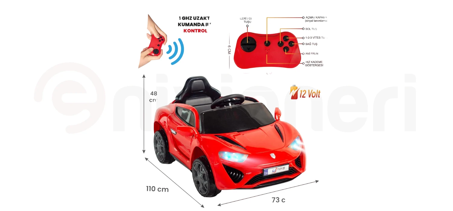 - Uzaktan Kumanda Özelliği: Ebeveyn kontrolünü artırmak için uzaktan kumandayla donatılmıştır. Bu özellik, çocuğunuz arabanın kontrolünü kaybettiğinde devreye girerek güvenliği sağlar.